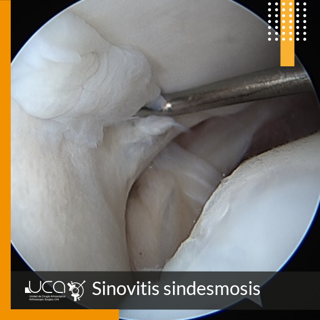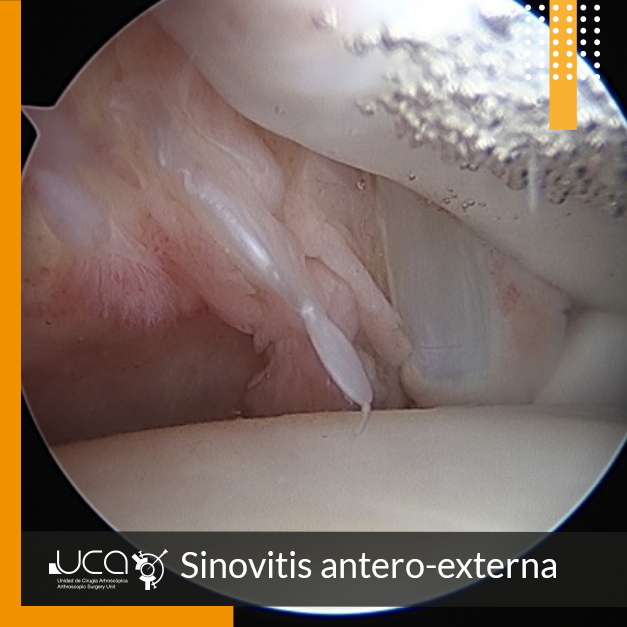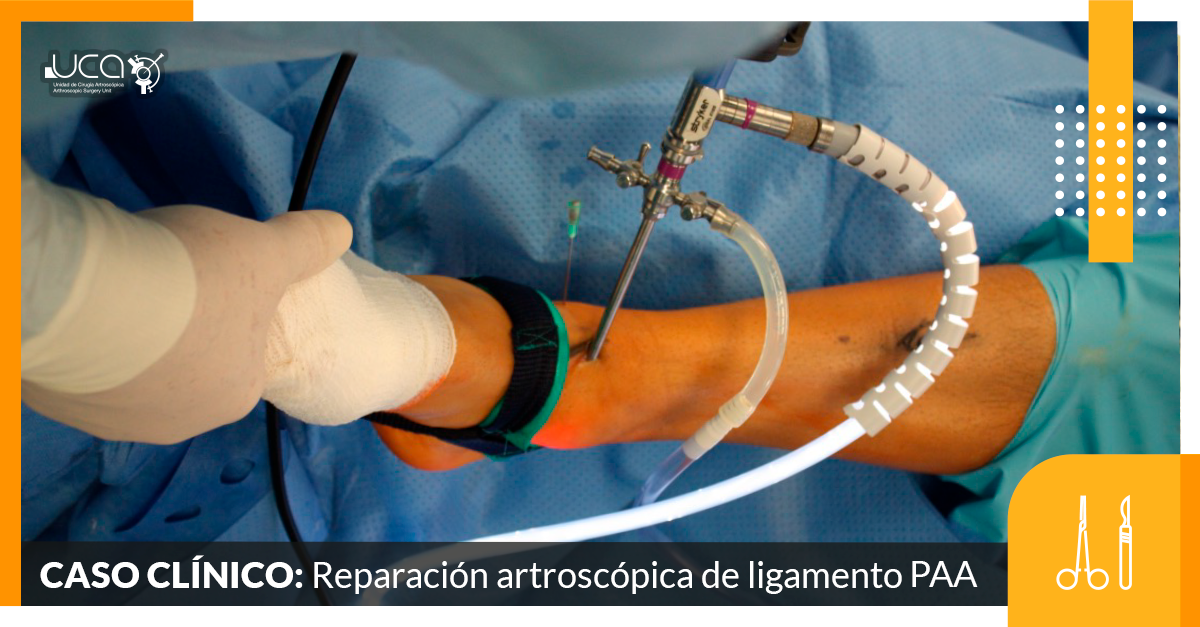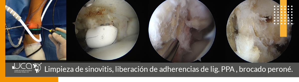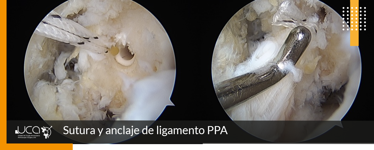 En la exploración se localiza dolor selectivo en ligamento PAA, por lo que se le indica y realiza artroscopia de toillete y reparación de ligamento PAA como podemos visualizar a continuación.