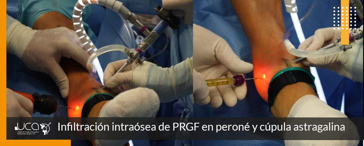 Se le realiza un tratamiento conservador con infiltración PRGF intraóseo en astrágalo, en ligamento PAA e intraarticular asociado a tratamiento fisioterapeútico, mejorando la exploración del cajón anterior y laxitud.