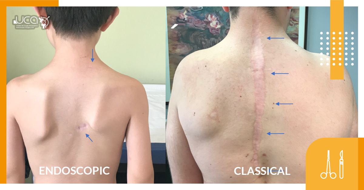 Para conseguir hacer descender la escápula a través del procedimiento estándar de Woodward se precisa una incisión quirúrgica muy grande. La técnica ideada por el Dr. Soldado ha demostrado conseguir resultados excelentes con tan solo dos pequeñas incisiones siguiendo el procedimiento de Woodward de forma endoscópica.