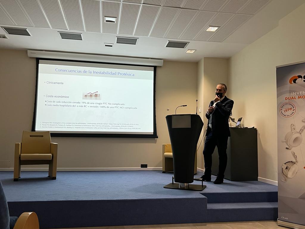 Durante su exposición, el Doctor Guadilla ha ofrecido detalles sobre el concepto de 'Doble Movilidad', en concreto, sobre la utilización de una prótesis de cadera determinada que posteriormente ha implantado a dos pacientes. Esta parte práctica de su intervención resultó uno de los momentos más esperados de la jornada, pues la experiencia en este tipo de operaciones tan concretas por parte del Hospital es escasa hasta la fecha.