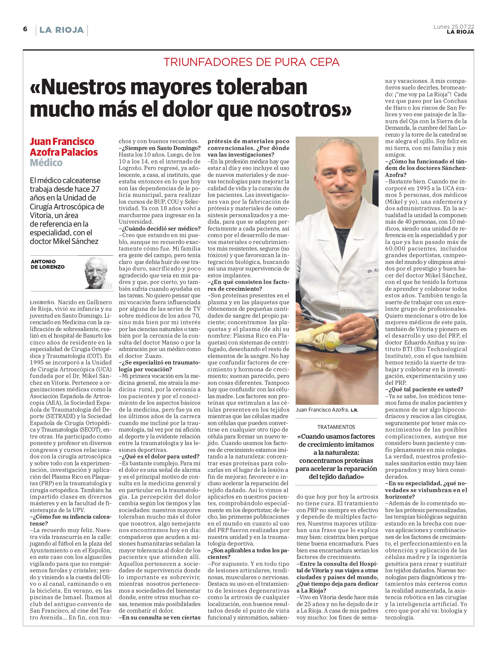 Buen momento para recordar la entrevista que recientemente en el diario La Rioja le hicieron a su paisano, y miembro de la Unidad de Cirugía Artroscópica (UCA) desde hace casi treinta años, Juan Azofra, uno de los traumatólogos más reputados del país y un crack como persona y compañero.