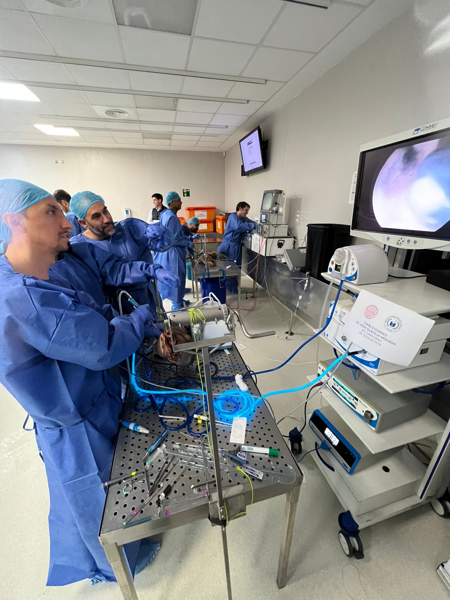 Durante su estancia, Guadilla y Fiz llevaron a cabo una formación práctica con los futuros jóvenes cirujanos ortopédicos del establecimiento de los portales artroscópicos a la cadera, de la preparación del acetábulo para la reparación labral y la resección del borde acetabular en los casos de pincer, así como en la capsulotomía, la osteoplastia femoral y también en la exploración artroscópica de diferentes patologías articulares de cadera.